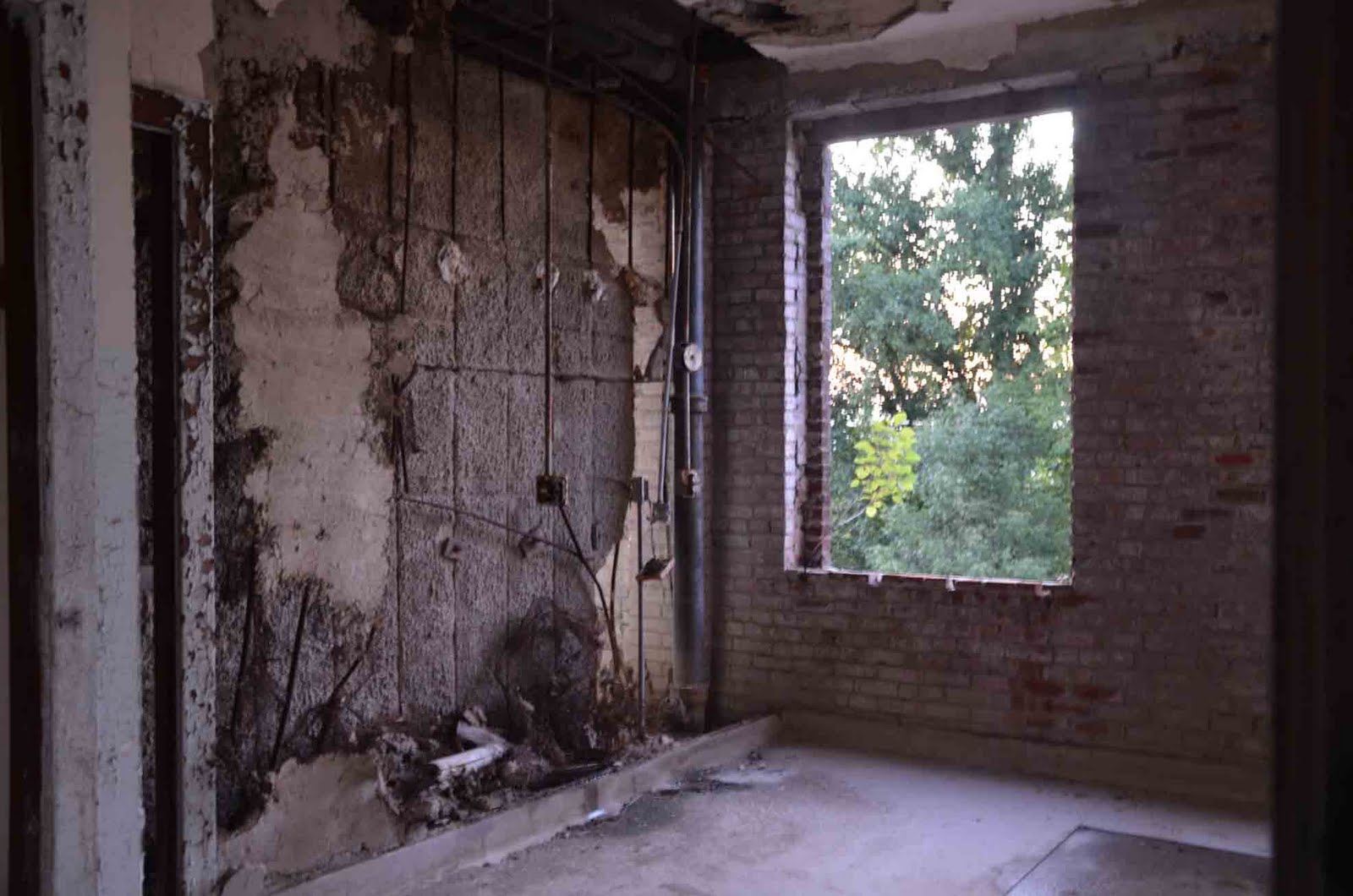 The entire front of the second, third, and fourth floors are open to the outside. Originally covered in just metal screens, this is where the tuberculosis patients spent every day, rain or shine, hot or cold, breathing in fresh air because before antibiotics, health care professionals thought fresh air and sunshine cured tuberculosis. Little did they know that this "cure" was just a long, slow path to the inevitable death.